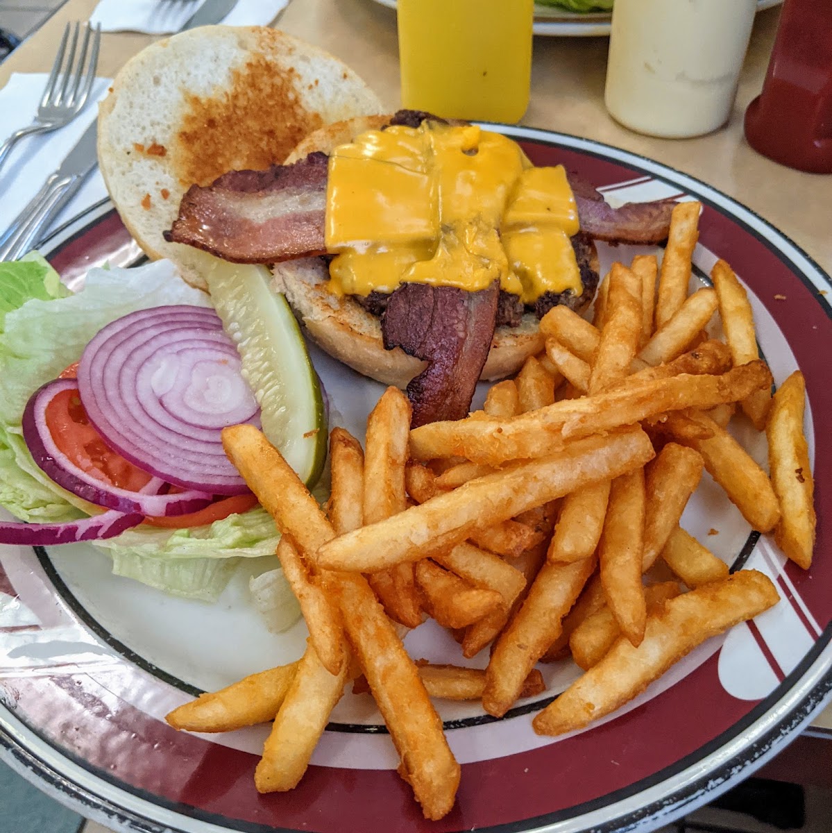 Those who stop by can expect a no-frills dining room that pairs slightly nostalgic decor with friendly chatter, making it a fitting spot for casual breakfasts, Mother’s Day brunches, or lunch breaks. The kitchen covers classics like club sandwiches, bacon burgers, and hot turkey sandwiches, making it easy to bring a group where folks can find their go-to favorites. Despite its traditional bent, the menu includes touches like pepper jack cheese on the Popeyes Revenge sandwich or an Okonomiyaki, which add a dash of variety without straying from the comfort zone.